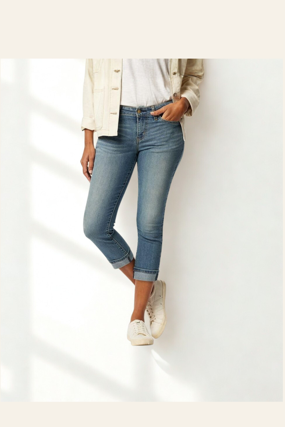 These slim-fit mid-rise capris hug your curves and move with you, while the classic cuffed hem keeps your spring and summer outfits looking polished — available in regular and plus sizes for the perfect fit. -